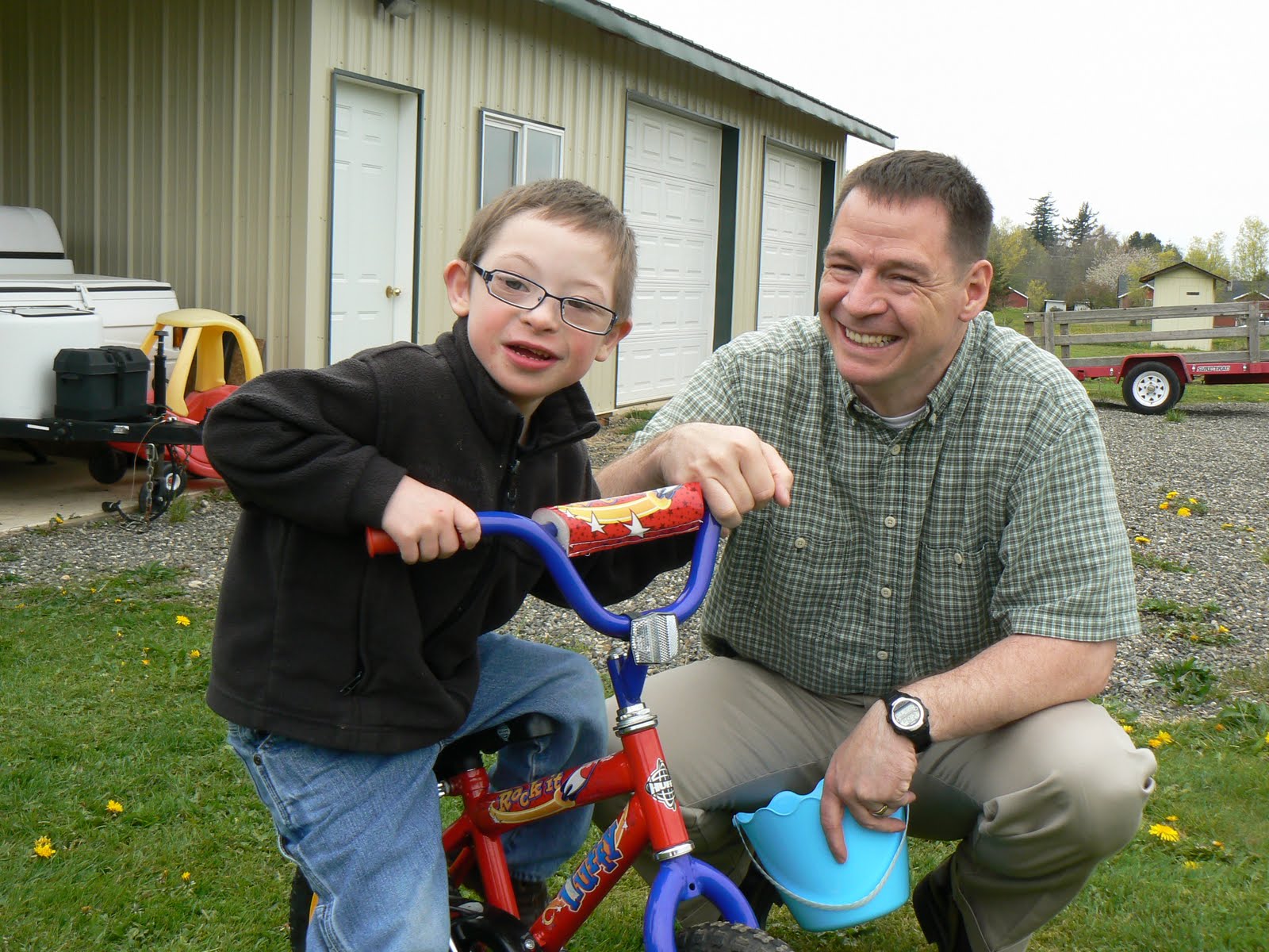 Dylan, you sure have been busy. 4 wheelin, egg hunt and then the bike. Love all the pics. Sweetie, you are amazing. The picture of J following daddy, Priceless.